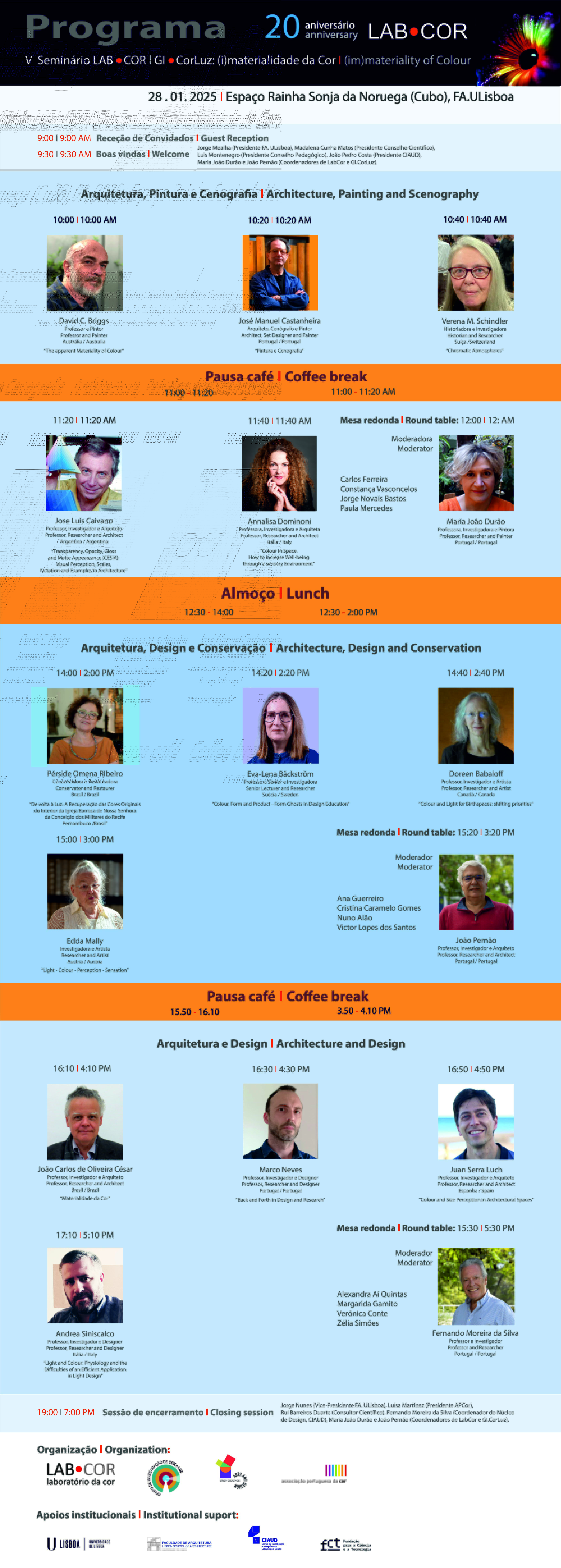 O LabCor (Laboratório da Cor) / FA.ULisboa e o GI.CorLuz (Grupo de Investigação de Cor e Luz) / CIAUD (Centro de Investigação em Arquitetura, Urbanismo e Design ) em parceria com a APCor (Associação Portuguesa da Cor) e o SG – AD (AIC- International Colour Association Study Group on Arts and Design) têm o prazer de convidá-lo(a) para a Celebração do 20º Aniversário do LabCor e V Seminário LabCor | GI.CorLuz.